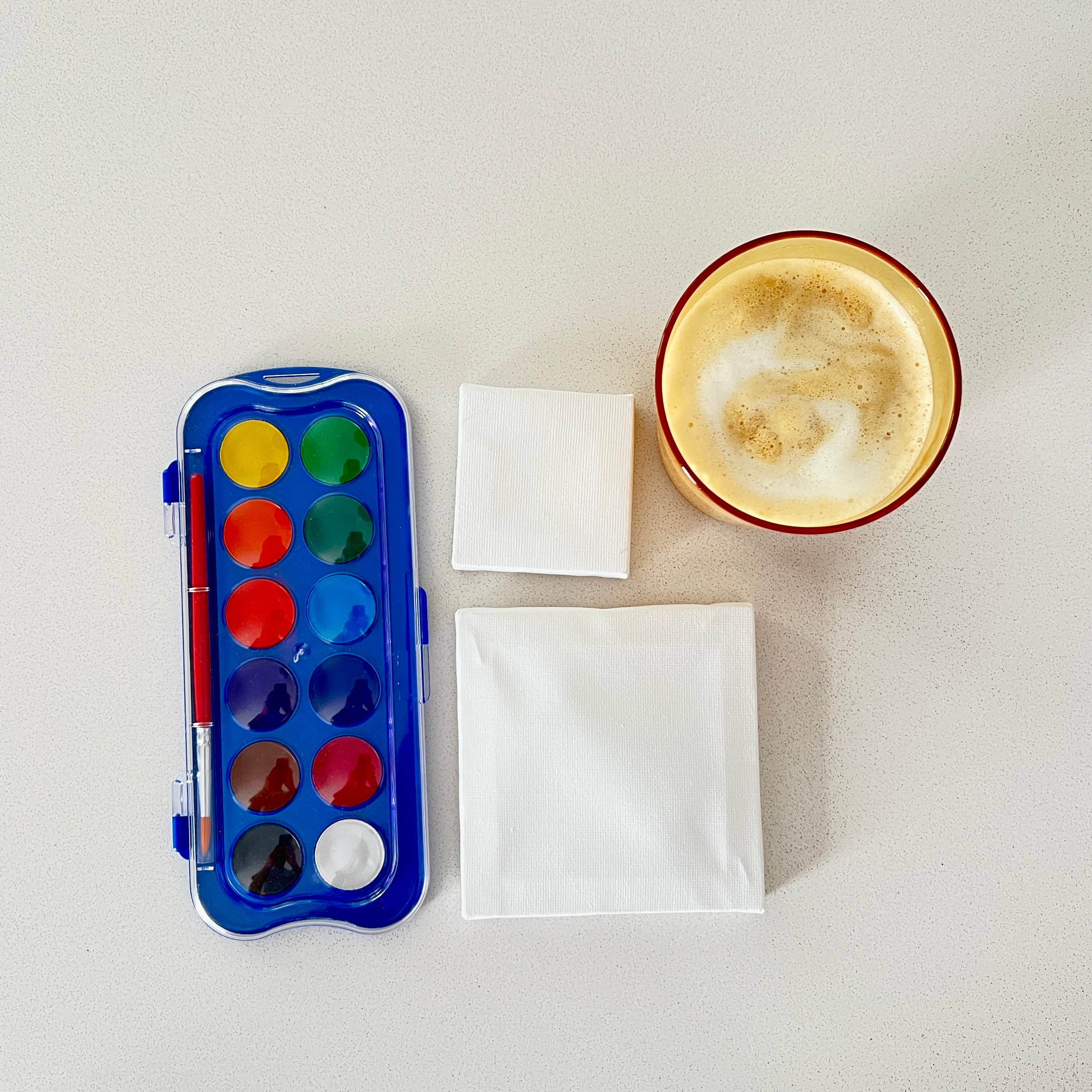 You give me your instructions to make art on a small 10x10cm canvas and I mail it to you.