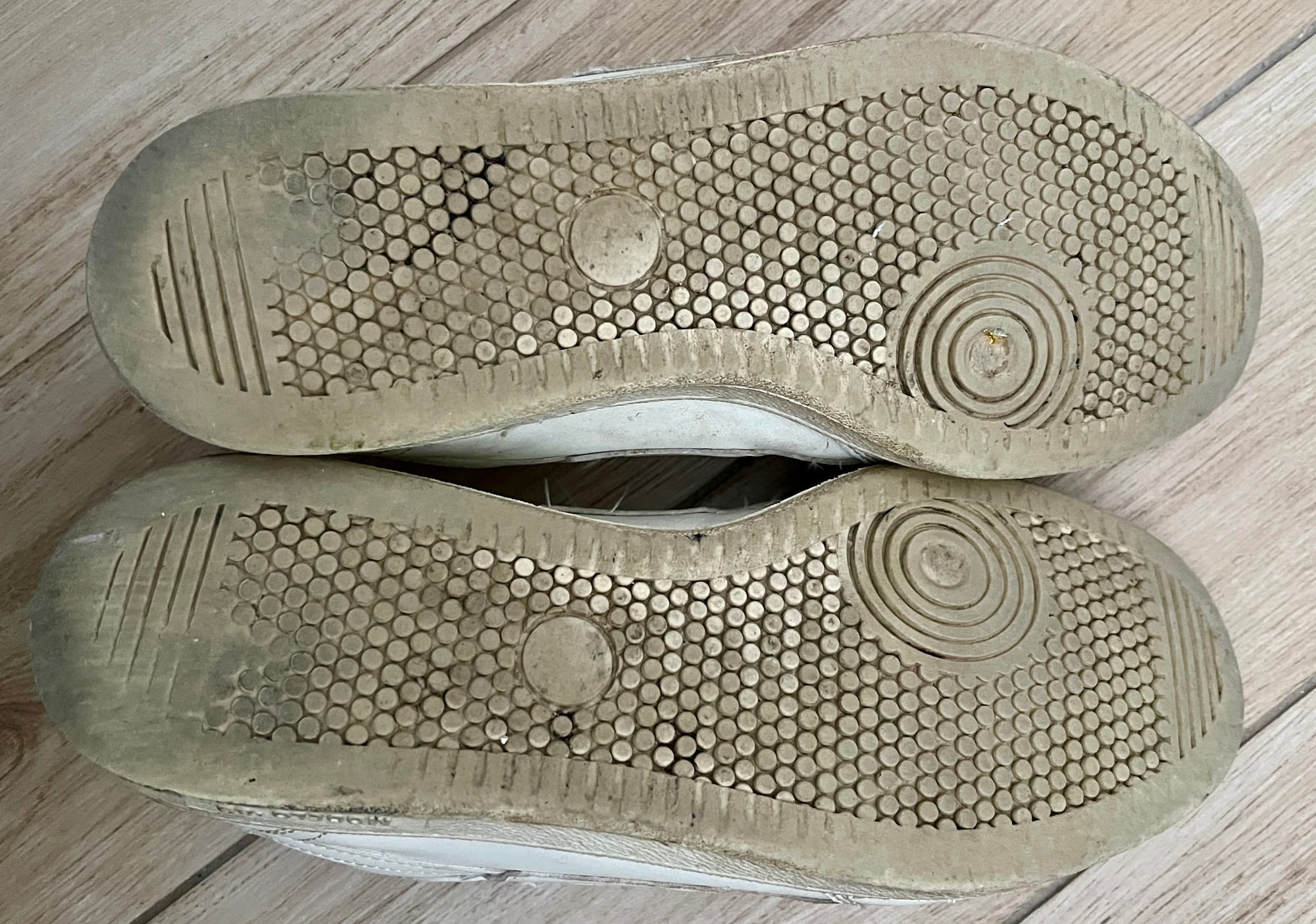 and the bottoms of the soles.